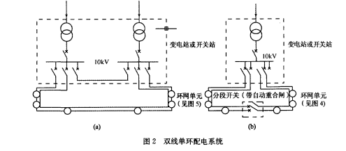 2006年1月正式實施的江蘇省地方標準《江蘇省工程建設標準》DGJ31/J14-2005中規定,配所--般應優先采用環網單元(環網單元是指環式配電系統中配電所的系統接線)??梢姯h式配電系統是10kV配電系統的推薦系統和發展方向。