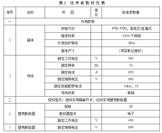 低壓電纜分支箱技術參數特性見表3