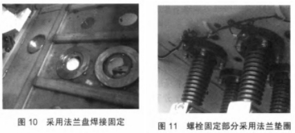 (3)穿墻套管與開關(guān)柜底板密封固定部位選用法蘭盤焊接固定設備,如圖10所示,確保穿墻套管與開關(guān)柜底板觸摸部分平整無變形。一起螺栓固定部分選用法蘭墊圈,如圖11所示,確保了螺栓緊固力均勻作用于穿墻套管,然后消除了穿墻套管密封固守時的不均勻固定應力。