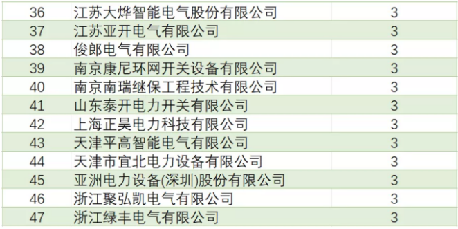 表2國網環(huán)網箱產品中標企業(yè)(市場份額超過1%部分)